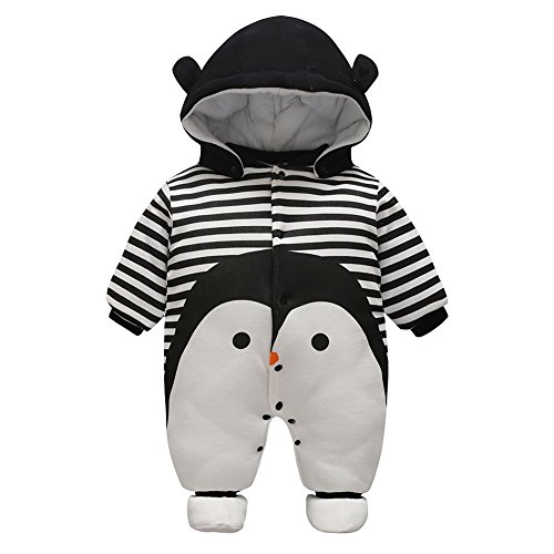 ベビー服 ロンパース カバーオール フード付き 新生児 男の子 女の子 長袖 秋冬 6ヶ月-9ヶ月 防寒着 Meedot