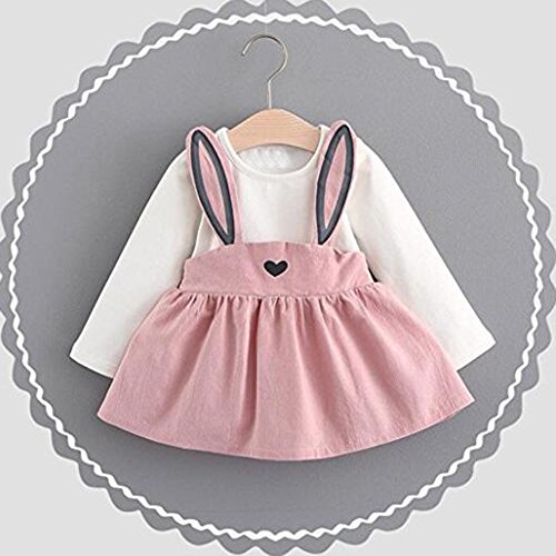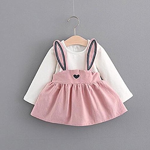 ワンピース ベビー服 長袖ドレス 可愛い ウサギ耳 子供服 オシャレ 通園 発表会 旅行 記念日 Meedot ピンク 70cm