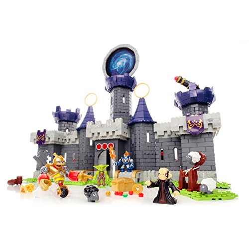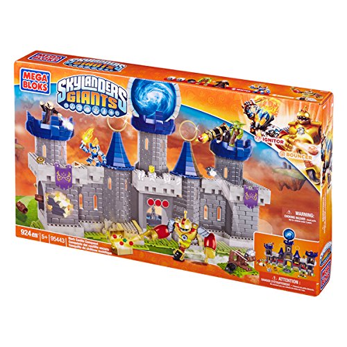 This Skylanders Giants Dark Castle Conquest features a working catapult, castle ring vortex, collapsing wall, swiveling throne and much more. This complex Mega Bloks playset includes buildable Bouncer, Ignitor, Kaos and Glumshanks characters. Bring order to Kaos with the buildable Dark Castle Conquest Atop the Dark Castle hides the dark Portal Master Kaos and his most trusted minion Glumshanks Ignitor and Bouncer team up to scale the fortress They must overcome many obstacles like the collapsing wall, tumbling barrels and falling ramp Fire the Sheep through the castle rings and discover the many other cool features Buildable castle with working launcher, collapsing wall, swiveling throne, interior courtyard with Kaos fountain Working catapult and castle ring vortex Two white sheep and one exclusive black sheep Cheese, pizza and treasure chest