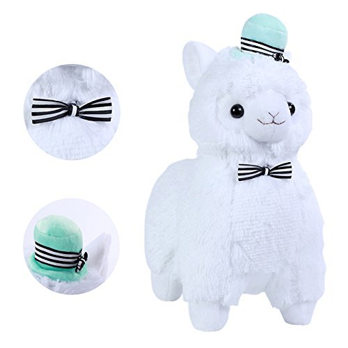 KSB 14 White Plush Alpaca With Tie And HatCute Soft Stuffed Animals Cushion Toy DollBest Birthday Gifts For The Children Kids Over 1 Years-1 PCS [並行輸入品]