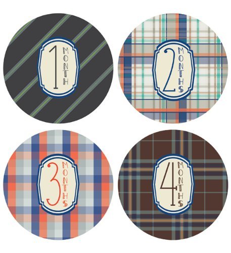 Lucy Darling Shop Monthly Baby Sticker - Baby Boy - Plaid Design - Months 1-12