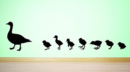 Design with Vinyl RAD 591 3 Duck with Baby Ducklings Family In Line Silhouette Vinyl Wall Decal Black 20 x 40 [並行輸入品]