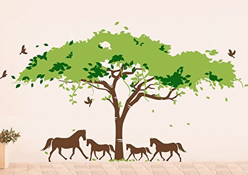 Pop Decors PT-0108-Vb Beautiful Wall Decal African Tree and Horses [並行輸入品]