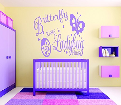 Design with Vinyl RAD 718 2 Butterfly Kisses Ladybug Hugs Baby Girl Bedroom Wall Decal Purple 16 x 24 [並行輸入品]
