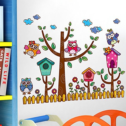 SWORNA Nature Series Owls House Family Removable Vinyl DIY Wall Art Mural Sticker Decal Decor for Kids Baby Girl Boy Bedroom Learning Playroom Kindergarten Nursery School Skirting Line 15H X 20W [並行輸入品]