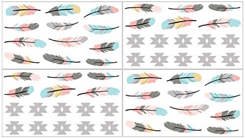 Feather Collection Boy or Girl Baby and Kids Wall Decal Stickers - Set of 4 Sheets [並行輸入品]
