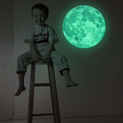 Happy Hours - 30cm Removable Moon Luminous Green Wall Stickers / Unique Wall Decors Glow in Dark Wall Sticker for Kids Boy Girl and Childrens Room Playroom Bedroom [並行輸入品]