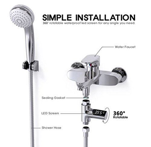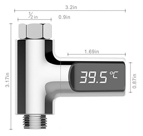 シャワーヘッド水温計 LEDデジタル表示 電池不要 水温温度計 (ご家族やお子様をやけどから守 ) (1/2 NPT)