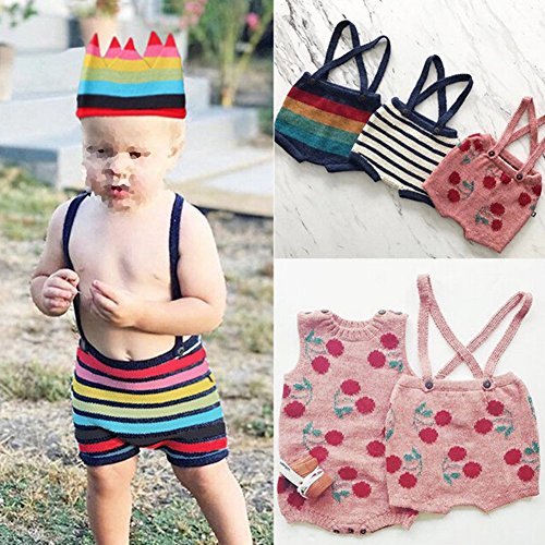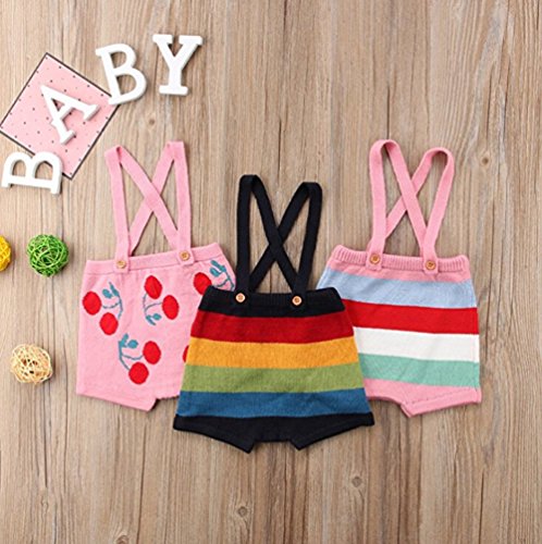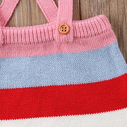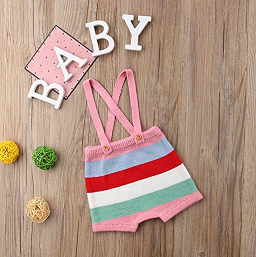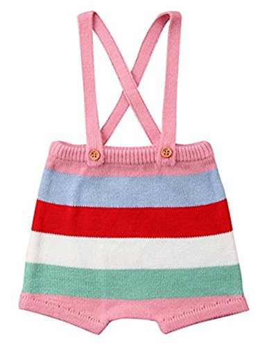 キッズ オーバーオール 女の子 男の子 綿混紡織物 ニット 柔らかい ロンパース サスペンダーズパンツ (ピンクストリップ, 2-3 Year)
