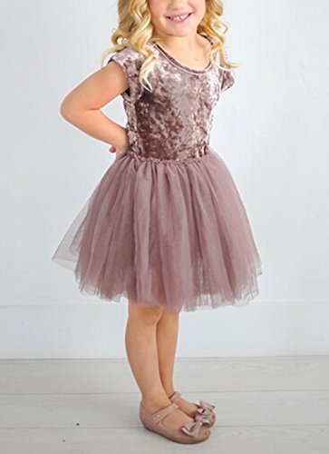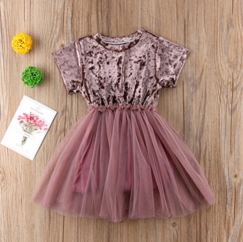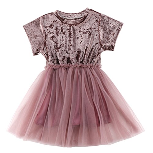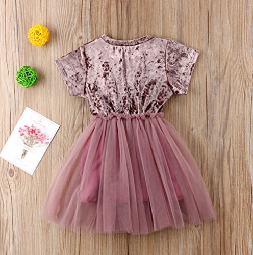 子供 女の子 半袖 ひざ丈 ワンピースドレス 幼児 キッズベビーガールズ ツツー 幻の紫 超柔らかい ベルベット メッシュ フォーマル パーティー ピアノ 結婚式 入園式 発表会 演奏会 (パープル, 80)
