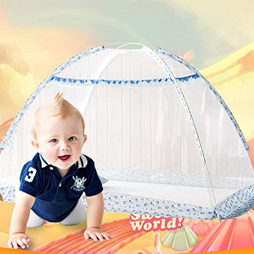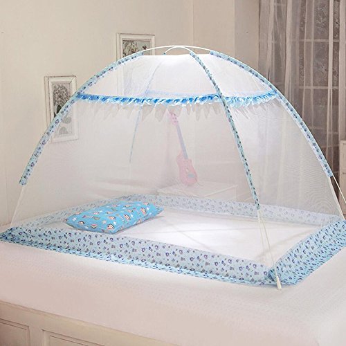 Meily ワンタッチ式蚊帳 ベビー蚊帳 ベビーベッド 床畳用 (ブルー(90*140*80cm))