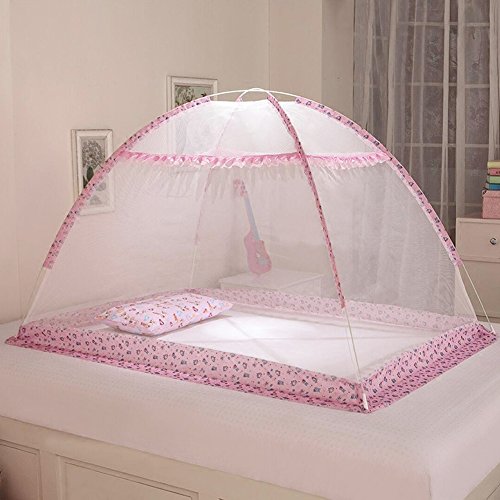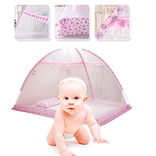 Meily ワンタッチ式蚊帳 ベビー蚊帳 ベビーベッド 床畳用 (ピンク(90*140*80cm))