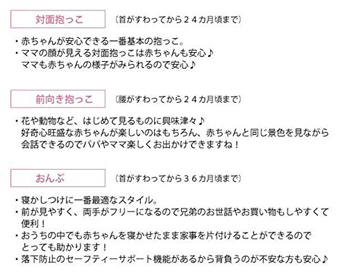 - 使用月齢:生後3月から36ヶ月まで(体重約15kgまで) 耐荷重:20KG ウェストベルトサイズ:66~124cm