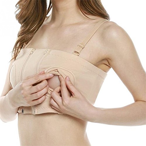 Meily ハンズフリー 搾乳器 ブラ 電動さく乳器使用時に両手が自由になり、他の事ができるようになるブラジャー (L, ベージュ)