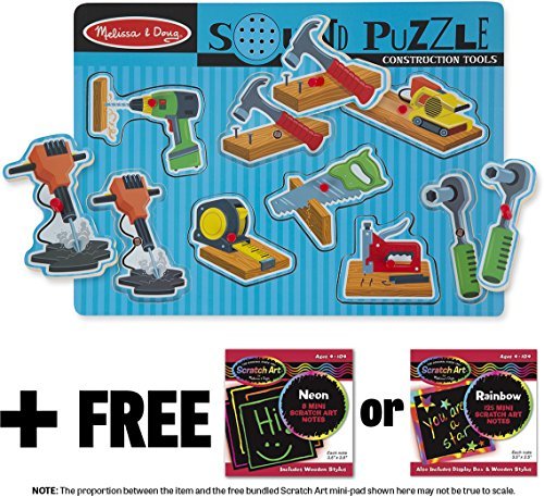 Construction Tools: 8-Piece Sound Puzzle + FREE Melissa & Doug Scratch Art Mini-Pad Bundle [07337] [並行輸入品]