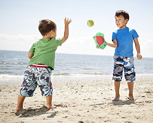 Young friends will have a ball with this amphibian twist on a classic backyard game. Set includes two soft balls and two smiling, self-stick fabric Skippy Frog catchers. This game can be played outdoors or inside, keeping kids four and older engaged and moving, and helping to develop gross motor skills, coordination, and interpersonal skills.