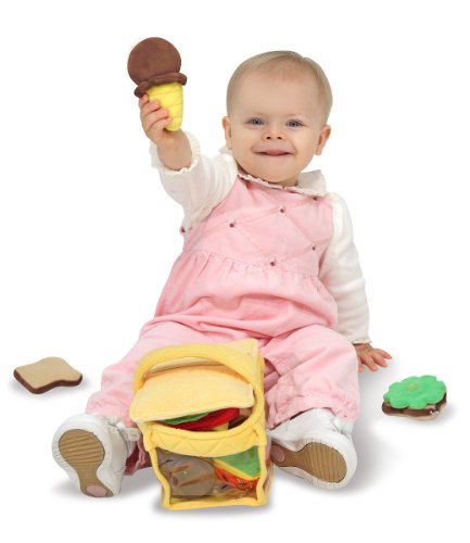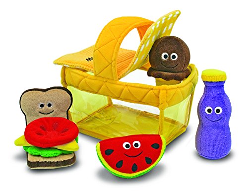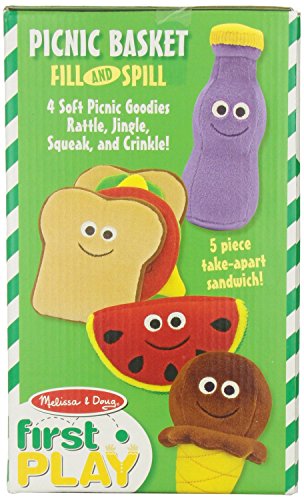 Here?s everything needed for a picnic (except the ants!). Remove and replace the four colourful picnic treats from a flip-top picnic basket. This soft play set features a wedge of watermelon, a bottled fruit drink, a take-apart sandwich and an ice cream cone. Constructed of high quality fabrics and phthalate-free plastic, this durable set will provide hours of pretend picnic fun!