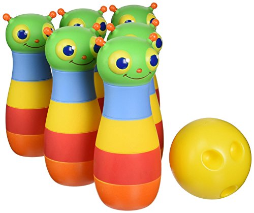 You'll have fun to 'spare' playing with this brightly colored plastic bowling set! Six bowling pins and a mini bowling ball fit into a handy bowling bag with durable fabric handles. Set the Happy Giddy pins in formation and you're ready for a perfect game.