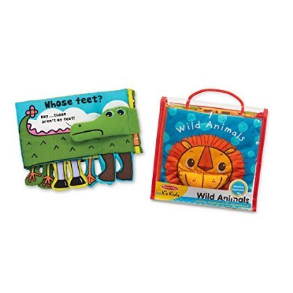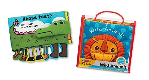 With textures, sounds, and sweet illustrations on every page, these soft cloth books add a playful twist to first concepts and simple narratives. In Whose Feet?, kids will delight in turning the pages to follow Crocodile's fancy footwork, and in Wild Animals, they can grasp the crinkly flaps to see the animals eat, play, clean their teeth, and go to bed. Melissa & Doug K's Kids cloth books bring amazing quality and play value to a child's first books. Each one is packed with low-tech, high-impact novelties, and durably constructed to last through story time, play time, and the washing machine, too!
