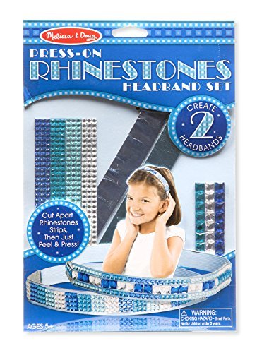 It's easy and fun to make dazzling headbands with this press-on rhinestone craft kit! create your own glittering designs or use the included suggestions. Use a pair of scissors to cut the multi-colored large and small rhinestones into blocks, rows, or individual gems, peel off the backing from the rhinestones, and press them firmly onto the two headbands to create uniquely designed accessories! encourages creativity and fine motor skills in children ages 5+.