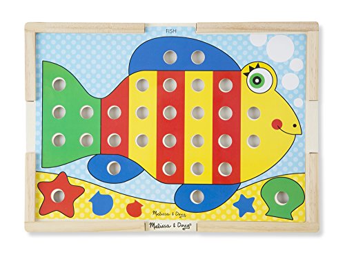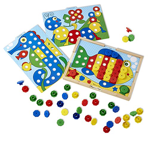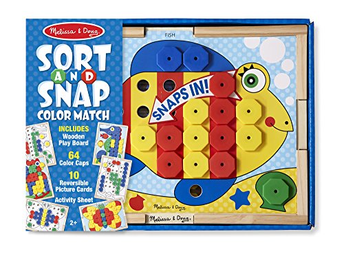 Toddlers will be fascinated and preschoolers will be inspired by this amazing color-matching and creative activity board! Ten reversible picture cards are held in place on a wooden play board when children place the snap caps in the holes. On one side of the picture card is in color for matching. The reverse side shows the picture in black and white, allowing the children to create their own patterns and designs! This activity is great for color recognition, sorting, and beginning math skills?even has 3-D picture suggestions!