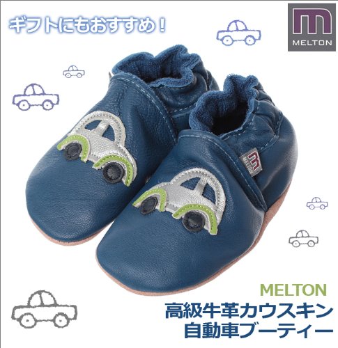 北欧デンマーク発 MELTON(メルトン) 高級牛革 ハンドメイド 自動車 ブーティー ブルー 18か月 - 24か月 18-24