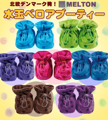 北欧デンマーク発!MELTON(メルトン)水玉 高級 ベロア ブーティー グレープ 6か月 - 9か月 18-19