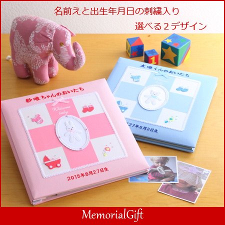 メモリアルギフト 名入れ 刺繍入り ベビー アルバム ピンク 通常イベントラッピング