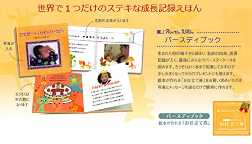 - 【自分が主人公になる写真で作る絵本】お誕生日や節句等、お祝のギフトに人気。大きくてはっきりした色のかわいいイラストは小さいお子様の読み聞かせにも最適です。後半に手書きで書き込めるスペースがあります。はじめてママと言った日、あんよが出来た日・・・など、写真はないけど書き留めたい成長記録を入れるのにぴったりです。