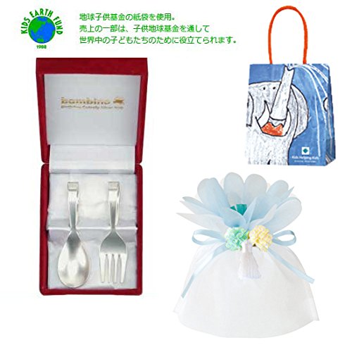 メモリアルギフト 出産祝い 名入れ 銀のスプーン&フォークセット 紙袋付き 豪華大人ラッピング