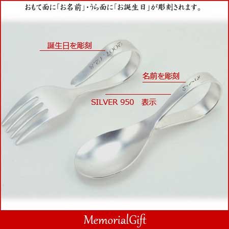 メモリアルギフト 出産祝い 名入れ 銀のスプーン&フォークセット 通常イベントラッピング