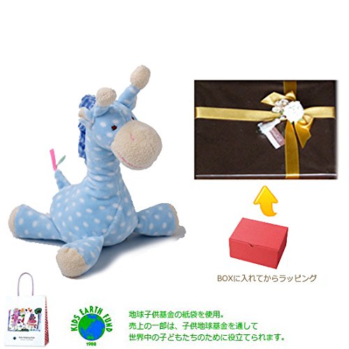 メモリアルギフト 洗えるぬいぐるみ ミンクプラッシュ ラトルになるキリン ブルー 紙袋付き 豪華大人ラッピング