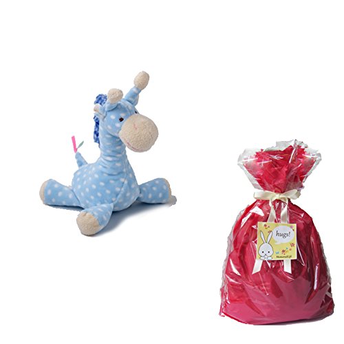 メモリアルギフト 洗えるぬいぐるみ ミンクプラッシュ ラトルになるキリン ブルー 通常子供ラッピング