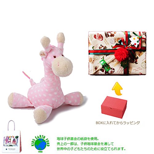 メモリアルギフト 洗えるぬいぐるみ ミンクプラッシュ ラトルになるキリン ピンク 紙袋付き 豪華イベントラッピング