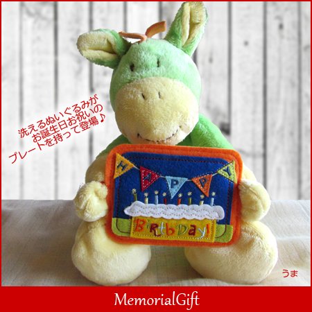 メモリアルギフト 洗えるぬいぐるみ 馬 バースディのタグつき ラッピング不要