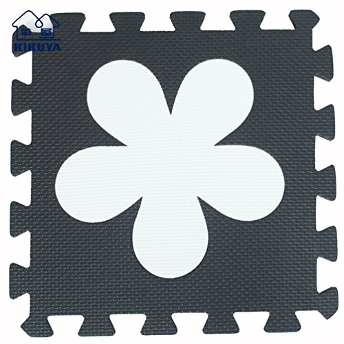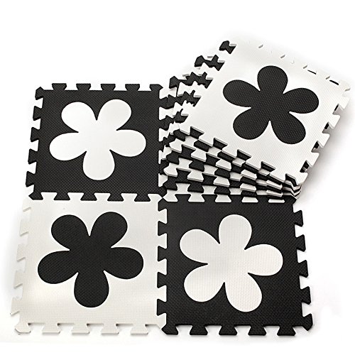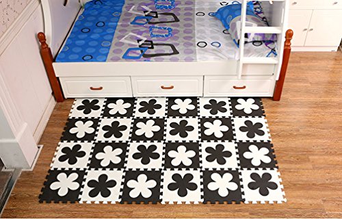 10個入りブラックホワイトフラワースタイルソフトパズルマットラグフローリングマットfor Kids Soft Foam Play Mat Jigsaw pop-outマット