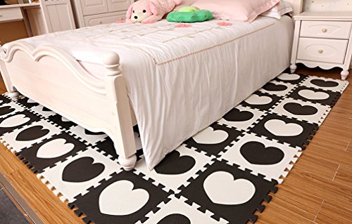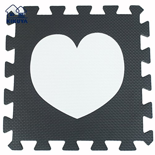 10個入りブラックホワイトハートスタイルソフトパズルマットラグフローリングマットfor Kids Soft Foam Play Mat Jigsaw pop-outマット