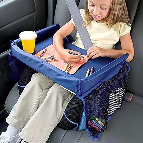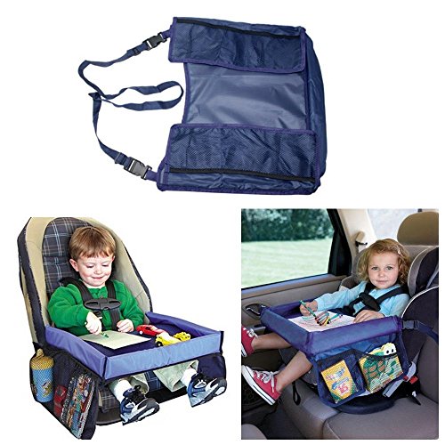 カーシートトレイ、防水性幼児のストレージボードのおもちゃ カーテーブルホルダー カーオーガナイザー 子供用 (青)