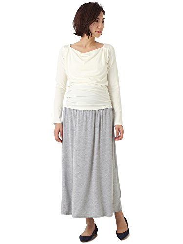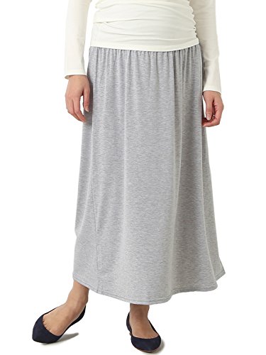 ストレッチ性のある天竺素材を使用したロングスカート。薄手の素材感は春先から秋口まで長いシーズンで着用可能です。伸縮性に富んでいるのでまだ小さめの初期のおなかから、大きくなってくる後期のおなかまで優しくフィット。