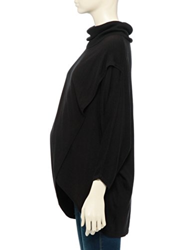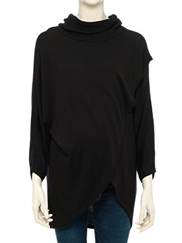 フロントが大きく重なりあっているデザインだからおなかの大きさにも左右されずすっきりとした着こなしに。産後には授乳時のケープ代わりにもなる万能ニット!