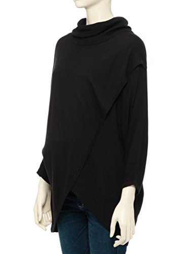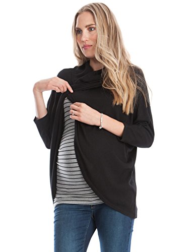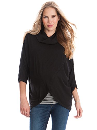 フロントが大きく重なりあっているデザインだからおなかの大きさにも左右されずすっきりとした着こなしに。産後には授乳時のケープ代わりにもなる万能ニット!