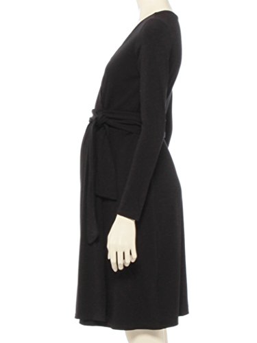 ブラックのクラシックなラップワンピースは身体の変化に合わせて自在にフィットし、大きくなるおなかも優しく包み込みます。胸元はカシュクールデザインになっているので産後の授乳にも活躍。 産前から主産後の授乳期まで長く着用頂けます。