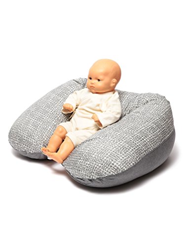アームの先についているトグルを留めておなかに巻いて授乳クッションとして、また赤ちゃんのおすわりの補助や読書時の背もたれとしても活躍します。