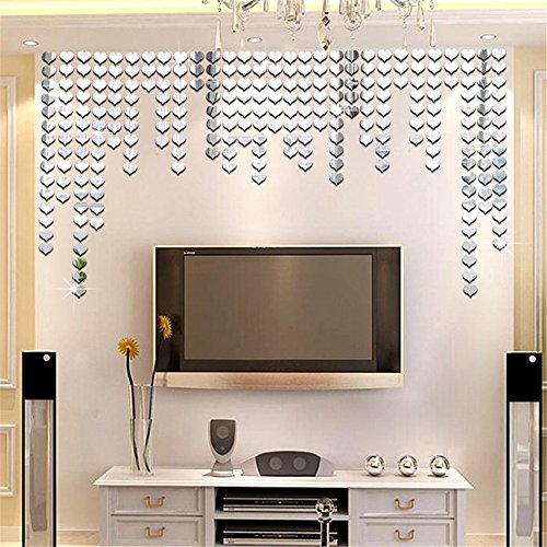 Merssavo 100個のミラーの壁のステッカーアートデカールの家の部屋の装飾3D DIY