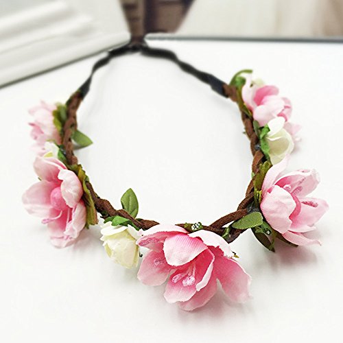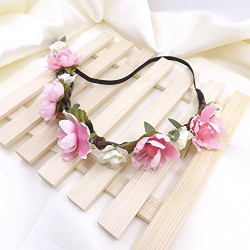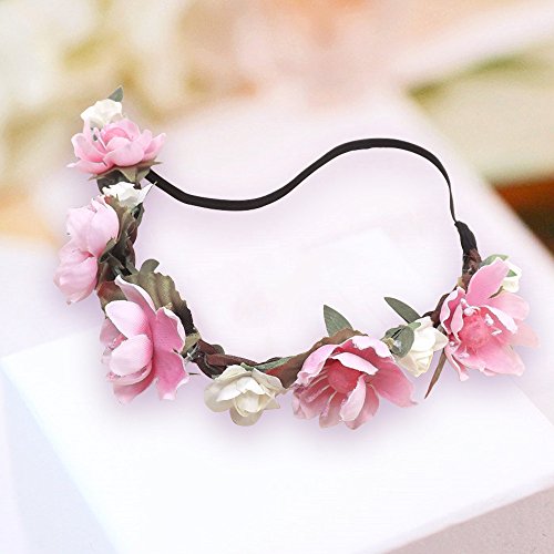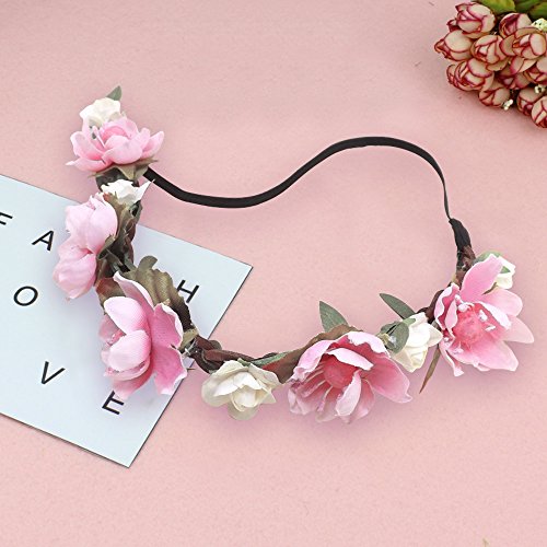 Merssavo ボヘミアの花のヘアバンド赤ちゃんの子供花のクラウン - ヘッドバンドの結婚式の女の子のヘッドウェア(ピンク)