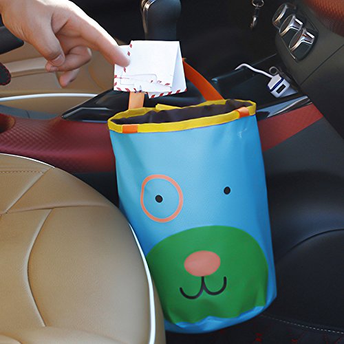 クリエイティブかわいいポータブル車のストレージのバケツのゴミ箱の折り畳み式の車ハンギングバスケット - 青