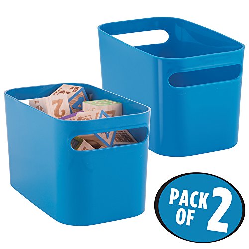 (Blue) - mDesign Kids/Baby Toy Storage Bin for Dolls, Modelling Clay, Blocks, Cars - Pack of 2, Blue