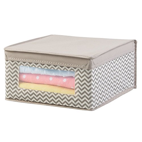 - mDesign Chevron Fabric Baby Nursery Closet Organizer Box for Clothing, Blankets, Towels, Bibs - Medium, Taupe/Natural