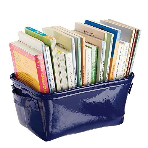 - mDesign Baby Nursery Organizer Storage Bin for Towels, Books, Diapers, Wipes - Vegan Patent Leather, Navy