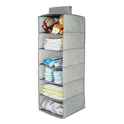 mDesign Chevron Fabric Baby Nursery Closet Organizers for Clothing, Diapers, Wipes, Lotion, Medicine - Set of 4, Gray/Cream by MetroDecor